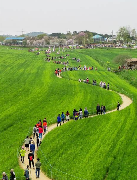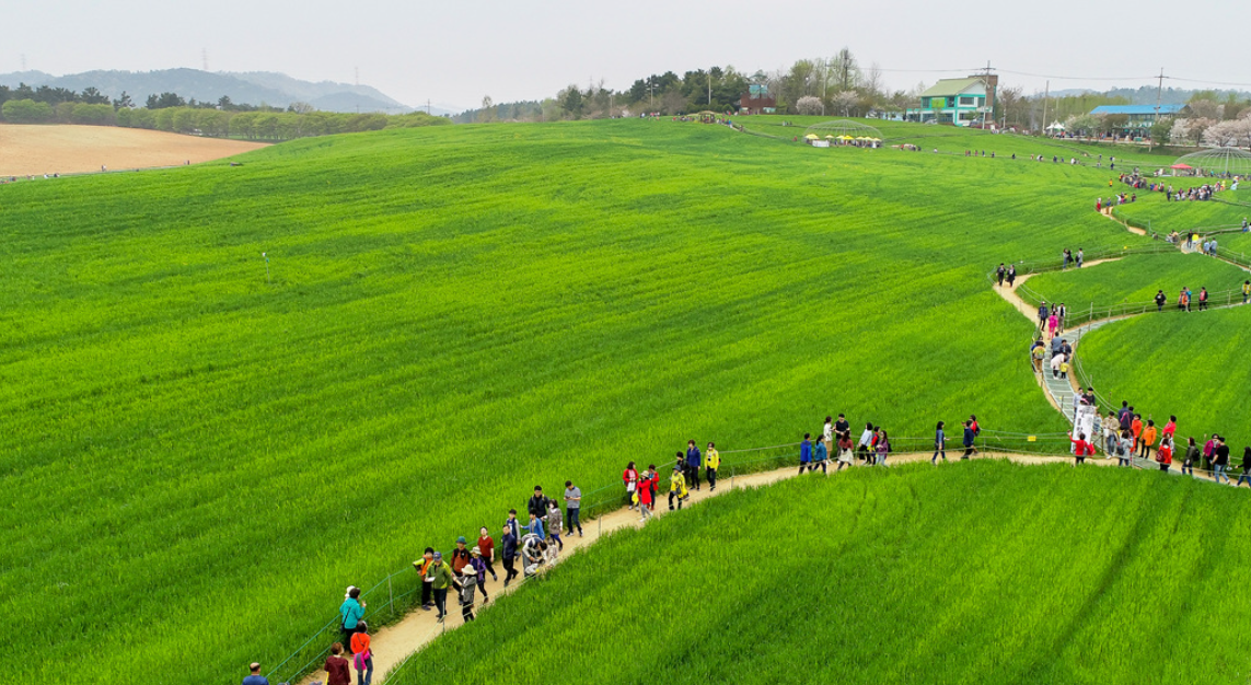 포토존, 가족 단위 체험 프로그램, 농산물 직거래 장터 등 다양한 즐길 거리도 준비되어 있습니다. 아이들과 함께하는 가족 단위 관광객이나 커플 여행객에게도 강력 추천하는 이유죠. 산책로를 따라 펼쳐지는 청보리 물결과 인생샷을 남길 수 있는 포인트도 다양하게 마련되어 있어요.