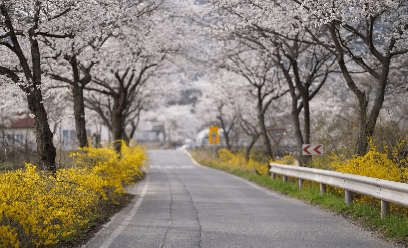 💡 Tip : 대한민국 최고의 벚꽃 명소로 철길와 로망스다리에서 벚꽃 터널 감상 가능합니다 !